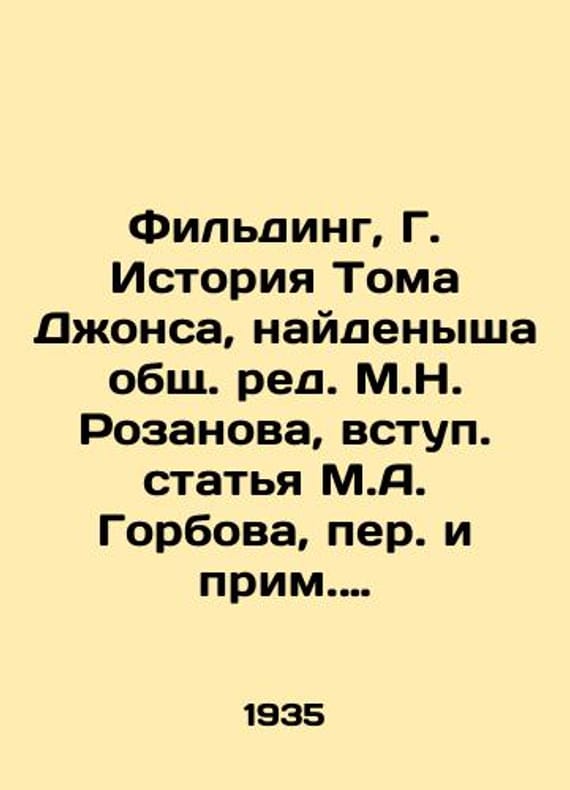 "Fielding, G. The Story of Tom Jones, Found, Edited by M.N. Rozanov, Introductory article by M.A. Gorbov, translated and commented by A.A. Frankovsky, etchings on S.M. Pozharskys tree. In 2 Vol. T 1-2./Filding, G. Istoriya Toma Dzhonsa, naydenysha obshch. red. M.N. Rozanova, vstup. statya M.A. Gorbova, per. i prim. A.A. Frankovskogo, gravyury na dereve S.M. Pozharskogo. V 2 t. T 1-2. Fielding, G. The Story of Tom Jones, Found, Edited by M.N. Rozanov, Introductory article by M.A. Gorbov, translated and noted by A.A. Frankovsky, etchings on a tree by S.M. Pozharsky. In 2 Vol. Vol. 1-2. Moscow; L.: Academia, 1935. We have thousands of titles and often several copies of each title may be available. Please feel free to contact us for a detailed description of the copies available. The delivery of this book might be delayed beyond the usual timeframe due to extended processing and preparation before shipment, and faster shipping options are not offered. Please inform us if you need the order by a certain date or have a deadline.SKUbd-e7c4b92f58033dcd"