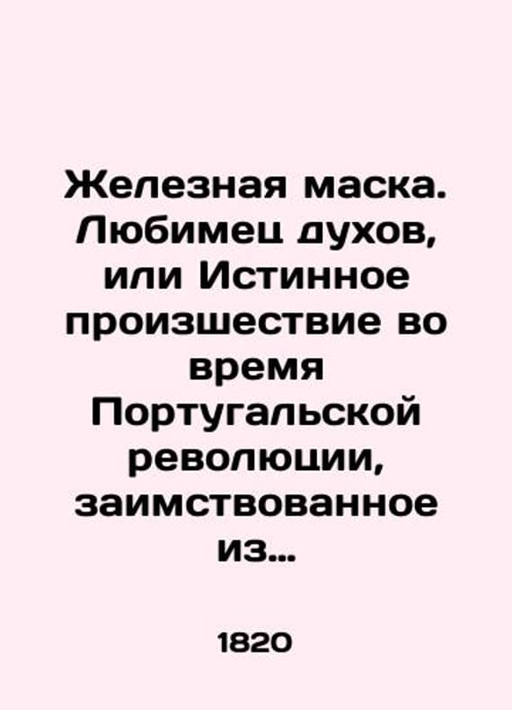 The Iron Mask. A favorite of spirits, or the True Pronunciation during the Portuguese Revolution, borrowed from the notes of the Iron Mask./Zheleznaya maska. Lyubimets dukhov, ili Istinnoe proizshestvie vo vremya Portugalskoy revolyutsii, zaimstvovannoe iz zapisok Zheleznoy Maski. The Iron Mask. A Favorite Perfume, or True Pronunciation during the Portuguese Revolution, borrowed from the notes of the Iron Mask. Moscow. In the printing house of S. Selivanovsky. 1820.-.We have thousands of titles and often several copies of each title may be available. Please feel free to contact us for a detailed description of the copies available. SKUbd-e8504af41bc0a29d.