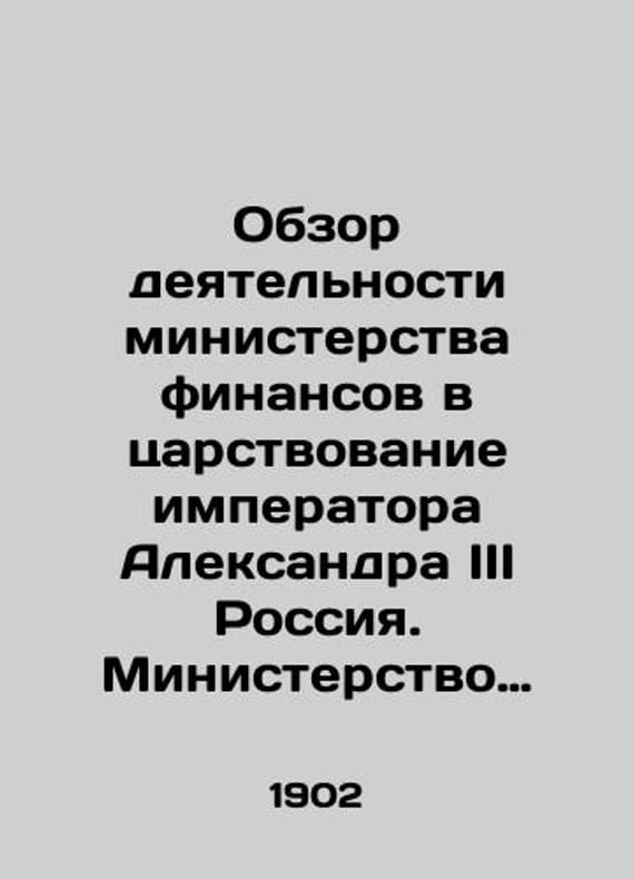 Overview of the activities of the Ministry of Finance during the reign of Emperor Alexander III Russia. Ministry of Finance. Overview of the activities of the Ministry of Finance during the reign of Emperor Alexander III: (1881-1894) -St. Petersburg: type. V. Kirschbaum, 1902.-673 p./Obzor deyatelnosti ministerstva finansov v tsarstvovanie imperatora Aleksandra III Rossiya. Ministerstvo finansov. Obzor deyatelnosti Ministerstva finansov v tsarstvovanie imperatora Aleksandra III: (1881-1894).-Sankt-Peterburg: tip. V. Kirshbauma, 1902.-673 s. Overview of the activities of the Ministry of Finance during the reign of Emperor Alexander III Russia. Ministry of Finance. Overview of the activities of the Ministry of Finance during the reign of Emperor Alexander III: (1881-1894) -St. Petersburg: type. V. Kirschbaum, 1902.-673We have thousands of titles and often several copies of each title may be available. Please feel free to contact us for a detailed description of the copies available. SKUbd-e8671a0e5ab83fdf.