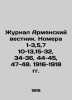 Journal Armenian Gazette. Issues 1-3,5,7 10-13,15-32, 34-36, 44-45, 47-48. 1916-1918./Zhurnal Armyanskiy vestnik. Nomera 1-3,5,7 10-13,15-32, 34-36, 44-45, 47-48. 1916-1918 gg. The printing press of the Moscow Publishing Company. Armenian-Russian weekly, published in Moscow from 1916 to 1918 by A. Dzhivelegaev and I. Amirov. It was republished in the late 1990s. It published information on the mass killings and deportations of Armenians in Ottoman Turkey, news from the Caucasus front of World War I, articles on the Armenian question, Armenian-Russian relations and literature. Valery Bryusov, Sergei Gorodetsky, Vladimir Nemirovich-Danchenko, Yuri Veselovsky, Lev, Vaan Tovmasyants and others were published in the magazine. We have thousands of titles and often several copies of each title may be available. Please feel free to contact us for a detailed description of the copies available. SKUbd-e95696945637a9e1.