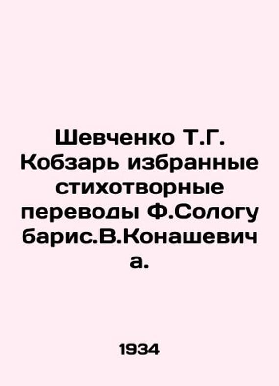 Shevchenko T.G. Kobzar Selected Poetry Translations by F.Sologubaris.V.Konashevich./Shevchenko T.G. Kobzar izbrannye stikhotvornye perevody F.Sologubaris.V.Konashevicha. L.: GIHL OGIZ, 1934.We have thousands of titles and often several copies of each title may be available. Please feel free to contact us for a detailed description of the copies available. SKUbd-e95e6128818e661c.