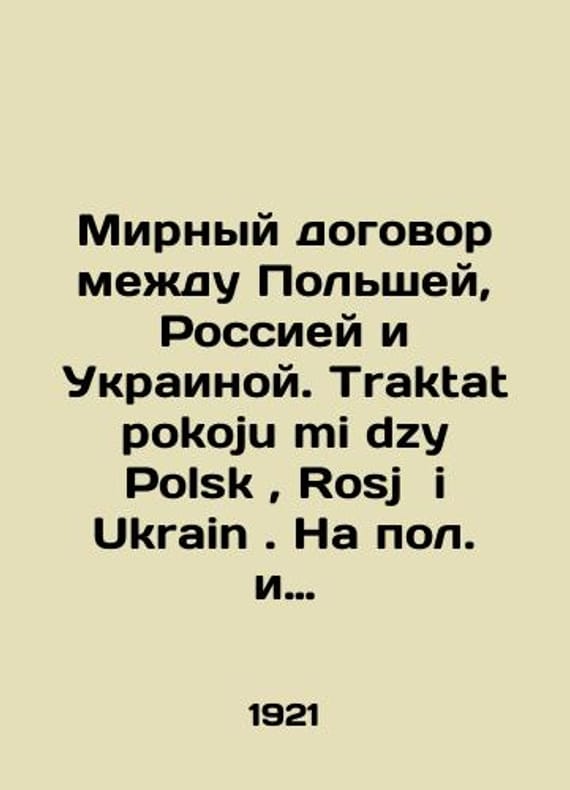 "Peace Treaty between Poland, Russia and Ukraine. Traktat pokoju miehondzy Polsk, Rosj and Ukraine/Mirnyy dogovor mezhdu Polshey, Rossiey i Ukrainoy. Traktat pokoju miedzy Polska, Rosja i Ukraina. Na pol. i rus. yaz. Peace Treaty between Poland, Russia and Ukraine. Traktat pokoju miehondzy Polsk, Rosj and Ukraine. In Polish and Russian language: Warsaw; Lviv: Ksiegarnia Gustawa Szylinga, 1921. 95We have thousands of titles and often several copies of each title may be available. Please feel free to contact us for a detailed description of the copies available. SKUbd-e9de582a8c873c41."
