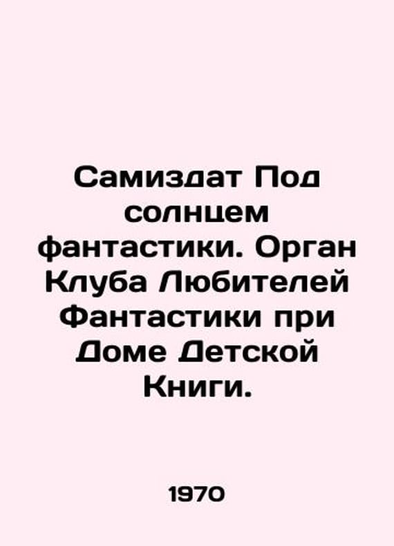 Samizdat Under the Sun of Science Fiction. Organ of the Fantasy Amateur Club at the Childrens Book House./Samizdat Pod solntsem fantastiki. Organ Kluba Lyubiteley Fantastiki pri Dome Detskoy Knigi. Samizdat Under the Sun of Fiction. The organ of the Club of Fans of Fantasy at the House of Childrens Book. # 1.1970s 78 l.: silt. We have thousands of titles and often several copies of each title may be available. Please feel free to contact us for a detailed description of the copies available. SKUbd-ea7365516ea69c96.