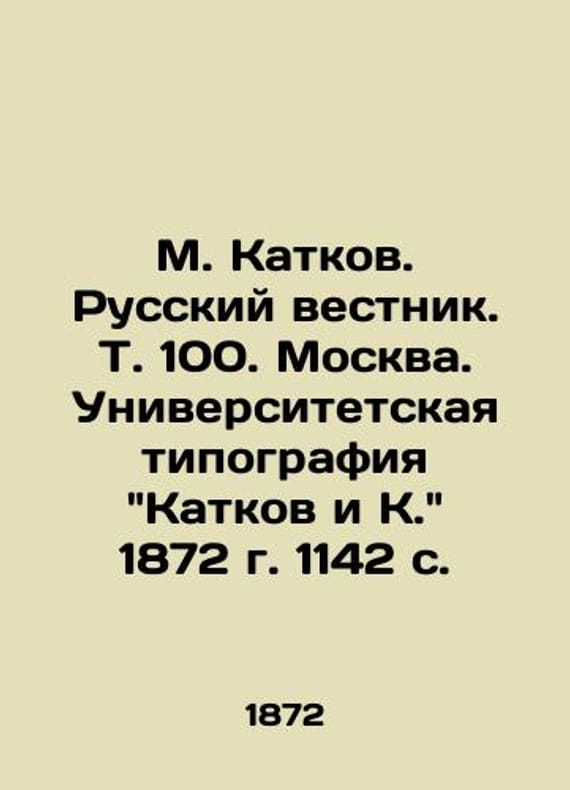 M. Katkov. Russian Bulletin. Vol. 100. Moscow. University Printing House Rollers and K. 1872, 1142 p./M. Katkov. Russkiy vestnik. T. 100. Moskva. Universitetskaya tipografiya Katkov i K. 1872 g. 1142 s. M. Katkov. Russian Bulletin. Vol. 100. Moscow. University Printing House Rollers and K. 1872, 1142 We have thousands of titles and often several copies of each title may be available. Please feel free to contact us for a detailed description of the copies available. SKUbd-eba71cd2326aae9a.