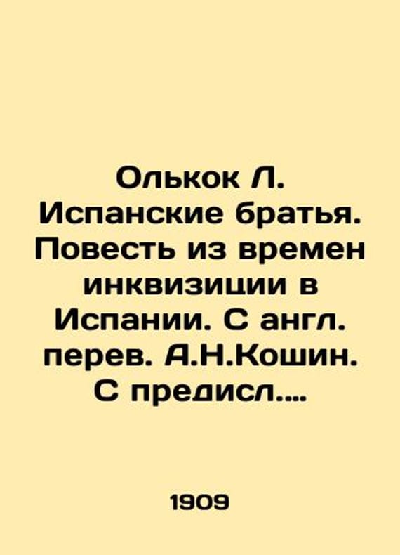 Olcock L. The Spanish Brothers. A Tale from the Spanish Inquisition./Olkok L. Ispanskie bratya. Povest iz vremen inkvizitsii v Ispanii. S angl. perev. A.N.Koshin. S predisl. I.Gorbunova-Posadova. Olcock L. Spanish Brothers. A Tale from the Inquisition in Spain. From the English translation by A.N. Koshin. With the foresight of I. Gorbunova-Posadova. We have thousands of titles and often several copies of each title may be available. Please feel free to contact us for a detailed description of the copies available. SKUbd-ebe6349ffc3b4eff.
