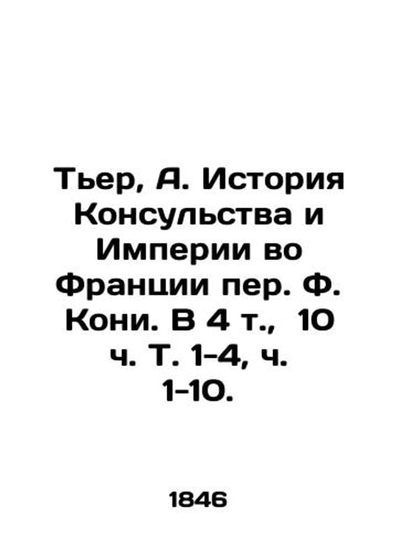Thiers, A. The History of the Consulate and Empire in France by F. Coney. In 4 Vol., 10 Vol. 1-4, Parts 1-10./Ter, A. Istoriya Konsulstva i Imperii vo Frantsii per. F. Koni. V 4 t., 10 ch. T. 1-4, ch. 1-10. Thiers, A. The History of the Consulate and Empire in France by F. Coney. In 4 Vol., 10 Vol. 1-4, Parts 1-10. We have thousands of titles and often several copies of each title may be available. Please feel free to contact us for a detailed description of the copies available. SKUbd-ec014b230ce4314d.