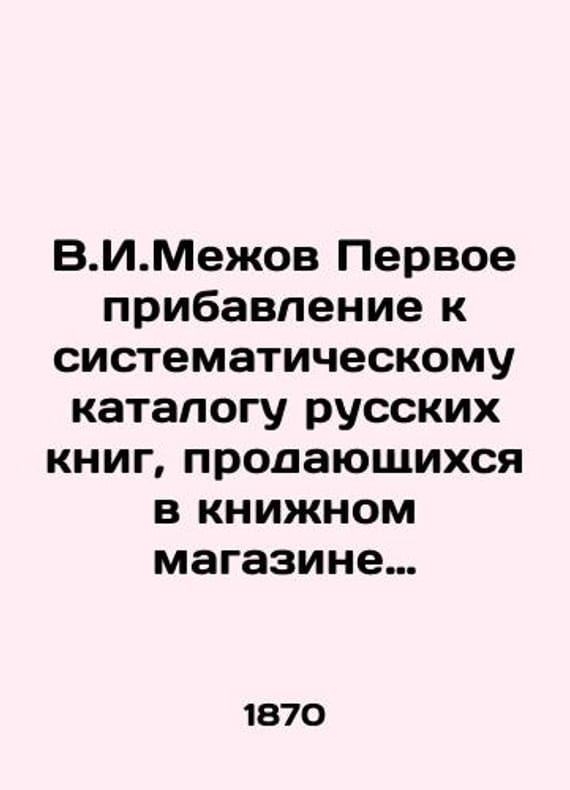 V.I.Mezhov The first addition to the systematic catalogue of Russian books sold in Alexander Fedorovich Bazunovs bookshop. 1870./V.I.Mezhov Pervoe pribavlenie k sistematicheskomu katalogu russkikh knig, prodayushchikhsya v knizhnom magazine Aleksandra Fedorovicha Bazunova. 1870 god. St. Petersburg 1870. First addition to the systematic catalogue of Russian books sold in the bookstore of Alexander Fedorovich Bazunov, Commissioner of the Imperial Academy of Sciences, Marine Scientific Committee, Ministries of Justice and Finance in St. Petersburg, on Nevsky Prospekt, Kazan Bridge, Olkhina House # 30, with an indication of 4,600 translations, critical articles, reviews, and bibliographic notes concerning books, both placed in the systematic catalogue and published in the light of its appearance. We have thousands of titles and often several copies of each title may be available. Please feel free to contact us for a detailed description of the copies available. SKUbd-ec2bdef3df1db2ab.