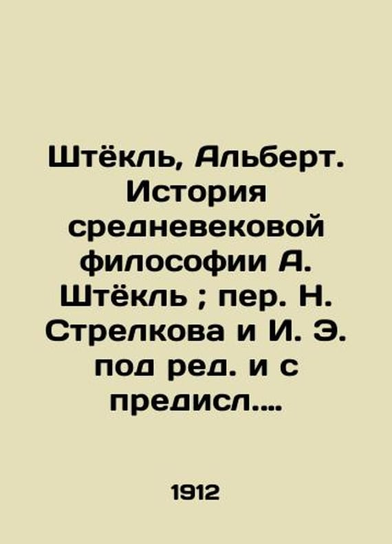 "Steckl, Albert: A History of Medieval Philosophy by A. Steckl; Translated by N. Strelkov and I. E., edited and prefaced by Prof. I. V. Popov. Moscow: V. M. Sablin, 1912/Shtyokl, Albert. Istoriya srednevekovoy filosofii A. Shtyokl; per. N. Strelkova i I. E. pod red. i s predisl. prof. I. V. Popova. Moskva: V. M. Sablin, 1912. 12, 307 s.: 21x15 sm. Steckl, Albert: A History of Medieval Philosophy by A. Steckl; Translated by N. Strelkov and I. E., edited and prefaced by Prof. I. V. Popov. Moscow: V. M. Sablin, 1912.We have thousands of titles and often several copies of each title may be available. Please feel free to contact us for a detailed description of the copies available. SKUbd-ec9be5c727bd355d."