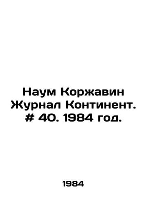 Nahum Korzhavin Journal Continent. # 40. 1984./Naum Korzhavin Zhurnal Kontinent. # 40. 1984 god. The Continent magazine was founded in Paris in 1974 as an organ of free Russian thought, Russian and pan-European anti-communist liberation movements. The magazines founder, Russian writer Vladimir Maksimov, who remained editor-in-chief for 17 years, was among its regular authors and editorial board members, including four Nobel laureates. We have thousands of titles and often several copies of each title may be available. Please feel free to contact us for a detailed description of the copies available. SKUbd-eca8d0a7195a4f24.