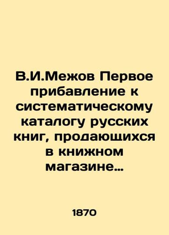 V.I.Mezhov The first addition to the systematic catalogue of Russian books sold in Alexander Fedorovich Bazunovs bookshop. 1870./V.I.Mezhov Pervoe pribavlenie k sistematicheskomu katalogu russkikh knig, prodayushchikhsya v knizhnom magazine Aleksandra Fedorovicha Bazunova. 1870 god. St. Petersburg 1870. First addition to the systematic catalogue of Russian books sold in the bookstore of Alexander Fedorovich Bazunov, Commissioner of the Imperial Academy of Sciences, Marine Scientific Committee, Ministries of Justice and Finance in St. Petersburg, on Nevsky Prospekt, Kazan Bridge, Olkhina House # 30, with an indication of 4,600 translations, critical articles, reviews, and bibliographic notes concerning books, both placed in the systematic catalogue and published in the light of its appearance. We have thousands of titles and often several copies of each title may be available. Please feel free to contact us for a detailed description of the copies available. SKUbd-ecbfba54470f4030.