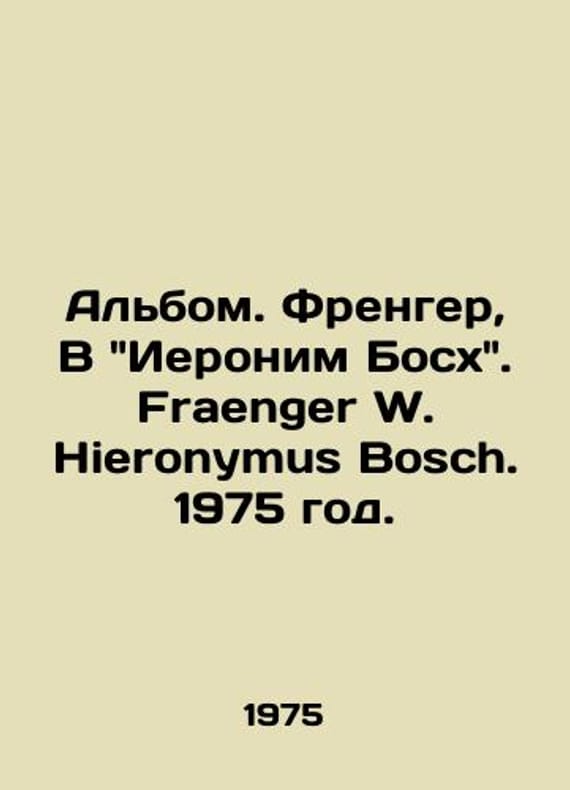 Album. Frenger, In Hieronymus Bosch. Fraenger W. Hieronymus Bosch. 1975./Albom. Frenger, V Ieronim Boskh. Fraenger W. Hieronymus Bosch. 1975 god. Dresden: VEB Verlag der Kunst. In German. Wilhelm Frenger (June 5, 1890-February 19, 1964), a German art historian. Frenger studied the era of the Peasant War in Germany and the mysticism of the late Middle Ages. He wrote important studies on the work of artists Jerg Rathgeb, Matthias Grunewald, and Hieronym Bosch.We have thousands of titles and often several copies of each title may be available. Please feel free to contact us for a detailed description of the copies available. The delivery of this book might be delayed beyond the usual timeframe due to extended processing and preparation before shipment, and faster shipping options are not offered. Please inform us if you need the order by a certain date or have a deadline.SKUbd-ecc3d39fb734db76