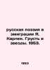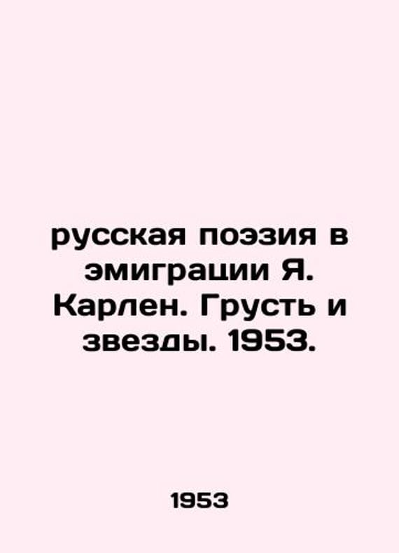 Russian Poetry in Emigration by Ya. Karlen. Sadness and the Stars. 1953./russkaya poeziya v emigratsii Ya. Karlen. Grust i zvezdy. 1953. Ya. Carlen. Sadness and the Stars. A collection of poems. 1953. Paris. 127 pages, 11,7x18,7 sm. We have thousands of titles and often several copies of each title may be available. Please feel free to contact us for a detailed description of the copies available. SKUbd-ef2f3adf9d10ec0e.