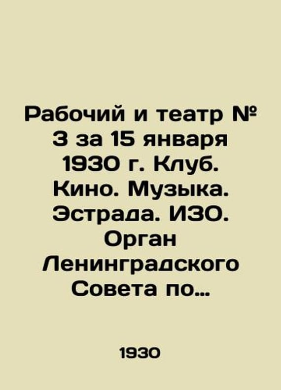 Worker and Theatre # 3 for January 15, 1930. Club. Cinema. Music. Estrada. IZO. Organ of the Leningrad Council for Art and Literature Affairs and the Leningrad Regional Council of Trade Unions/Rabochiy i teatr # 3 za 15 yanvarya 1930 g. Klub. Kino. Muzyka. Estrada. IZO. Organ Leningradskogo Soveta po delam iskusstva i literatury i Leningradskogo Oblastnogo Soveta professionalnykh soyuzov. Izdanie Teatkinopechati. Zhurnal vykhodit po pyatidnevkam. Worker and Theatre # 3 for January 15, 1930. Club. Cinema. Music. Estrada. IZO. Organ of the Leningrad Council for Art and Literature Affairs and the Leningrad Regional Council of Trade Unions.We have thousands of titles and often several copies of each title may be available. Please feel free to contact us for a detailed description of the copies available. SKUbd-ef8cb9dadd582d5.
