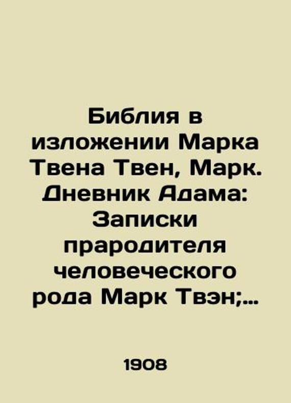 "The Bible as narrated by Mark Twain, Mark. Adams Diary: Notes of the human ancestor Mark Twain; Peter A. Levchanovsky./Bibliya v izlozhenii Marka Tvena Tven, Mark. Dnevnik Adama: Zapiski praroditelya chelovecheskogo roda Mark Tven; Per. A. Levchanovskogo. The Bible as narrated by Mark Twain, Mark Twain. Adams Diary: Notes of the ancestor of the human race Mark Twain; Peter A. Levchanovsky. St. Petersburg; Moscow: M. O. Wolf, 1908.-4, 87 p.: il.;. We have thousands of titles and often several copies of each title may be available. Please feel free to contact us for a detailed description of the copies available. SKUbd-efc2b4c8ca888995."