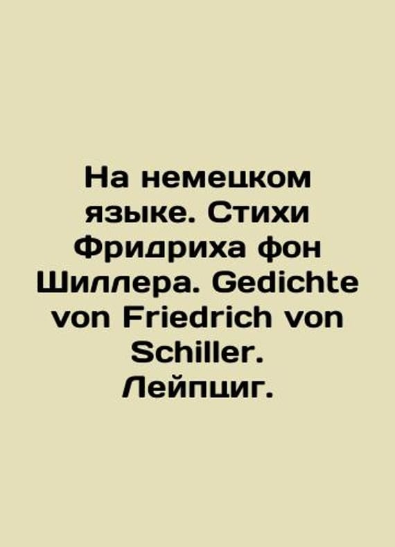 In German. Poems by Friedrich von Schiller. Gedichte von Friedrich von Schiller. Leipzig./Na nemetskom yazyke. Stikhi Fridrikha fon Shillera. Gedichte von Friedrich von Schiller. Leyptsig. In German. Poems by Friedrich von Schiller. Gedichte von Friedrich von Schiller. Leipzig. 286, 32.We have thousands of titles and often several copies of each title may be available. Please feel free to contact us for a detailed description of the copies available. SKUbd-f023fdcac9d9108e.