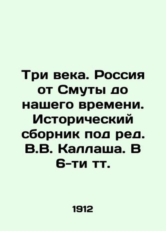 Three Centuries. Russia from Trouble to Our Time. Historical collection edited by V.V. Kallash. In 6 volumes./Tri veka. Rossiya ot Smuty do nashego vremeni. Istoricheskiy sbornik pod red. V.V. Kallasha. V 6-ti tt. T.1 XVII century. First half. 4, 259 We have thousands of titles and often several copies of each title may be available. Please feel free to contact us for a detailed description of the copies available. SKUbd-f04874e4e296cd4d.