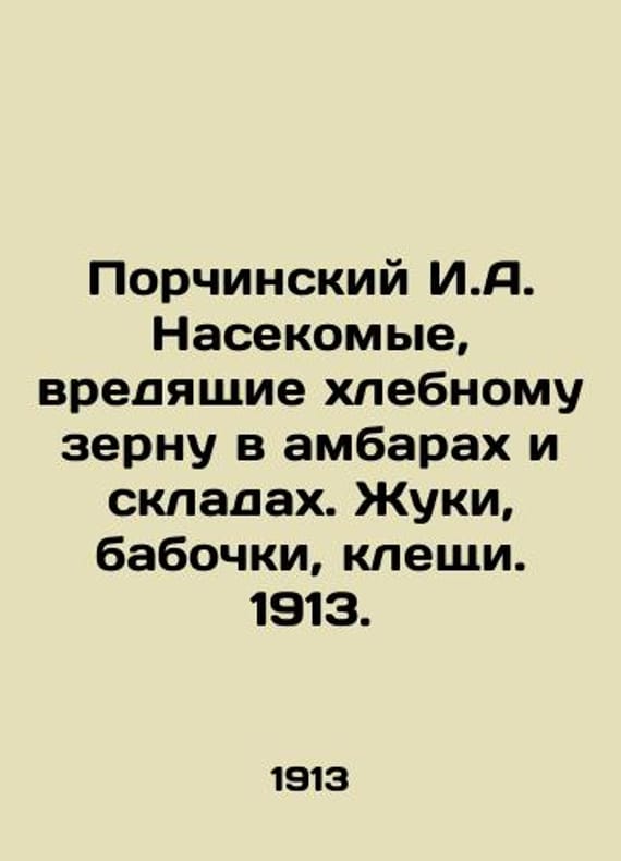 Porchinsky I.A. Insects damaging grain in barns and warehouses. Beetles, butterflies, ticks. 1913./Porchinskiy I.A. Nasekomye, vredyashchie khlebnomu zernu v ambarakh i skladakh. Zhuki, babochki, kleshchi. 1913. Iosif Porchinsky (1848-1916). Insects harmful to grain in barns and warehouses. Beetles, butterflies, ticks. Agricultural monograph by I. A. Porchinsky. St. Petersburg. Printing by M. Merkushev. 1913. 84We have thousands of titles and often several copies of each title may be available. Please feel free to contact us for a detailed description of the copies available. SKUbd-7481acc341b53aad.