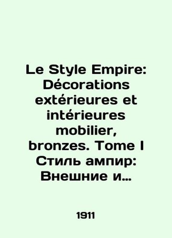 Le Style Empire: Decorations exterieures et interieures mobilier, bronzes. Tome I Style Empire: External and Interior Decoration, Furniture, Bronze. Volume 1, 1911./Le Style Empire: Decorations exterieures et interieures mobilier, bronzes. Tome I Stil ampir: Vneshnie i vnutrennie dekoratsii, mebel, bronza. Tom 1. 1911 god. Introduction et notices. Par J. Vacquier, secretaire general de la societe dhistoire et darcheologie du VII arrondissement de Paris. Chez F. Contet, editeur dart. Paris, 1911 Introduction and notes. Author J. Vaquier, Secretary-General of the Society of History and Archaeology of the Seventh arrondissement of Paris. W.F. Comte, publisher of art. Paris, 1911. Empire (imperial style), historical artistic style, which spread in Western Europe and, in part, in Russia, in the first third of the nineteenth century, mainly in architecture, interior design and decorative arts. Complexpediency was checked selectively, possible losses. We have thousands of titles and often several copies of each title may be available. Please feel free to contact us for a detailed description of the copies available. SKUbd-f21193b25482c071.