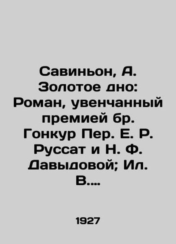 "Savignon, A. Golden Bottom: A Roman, crowned with the prize by the brothers Goncourt Per E. R. Roussat and N. F. Davydova; Il V. Svarog-L.: Around the World, 1927.-87 p./Savinon, A. Zolotoe dno: Roman, uvenchannyy premiey br. Gonkur Per. E. R. Russat i N. F. Davydovoy; Il. V. Svaroga.-L.: Vokrug sveta, 1927.-87 s. Savignon, A. Golden Bottom: A Roman, crowned with the prize by the brothers Goncourt Per E. R. Roussat and N. F. Davydova; Il V. Svarog-L.: Around the World, 1927.-87We have thousands of titles and often several copies of each title may be available. Please feel free to contact us for a detailed description of the copies available. The delivery of this book might be delayed beyond the usual timeframe due to extended processing and preparation before shipment, and faster shipping options are not offered. Please inform us if you need the order by a certain date or have a deadline.SKUbd-f2298c7b90b9fa31"