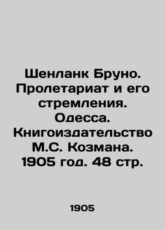 Shenland Bruno. The proletariat and its aspirations. Odessa. Book Publishing by M. S. Kozman. 1905. 48 pages/Shenlank Bruno. Proletariat i ego stremleniya. Odessa. Knigoizdatelstvo M.S. Kozmana. 1905 god. 48 str Shenland Bruno. The proletariat and its aspirations. Odessa. Book Publishing by M. S. Kozman. 1905. 48 pp.We have thousands of titles and often several copies of each title may be available. Please feel free to contact us for a detailed description of the copies available. SKUbd-ad1d26b02231657a.