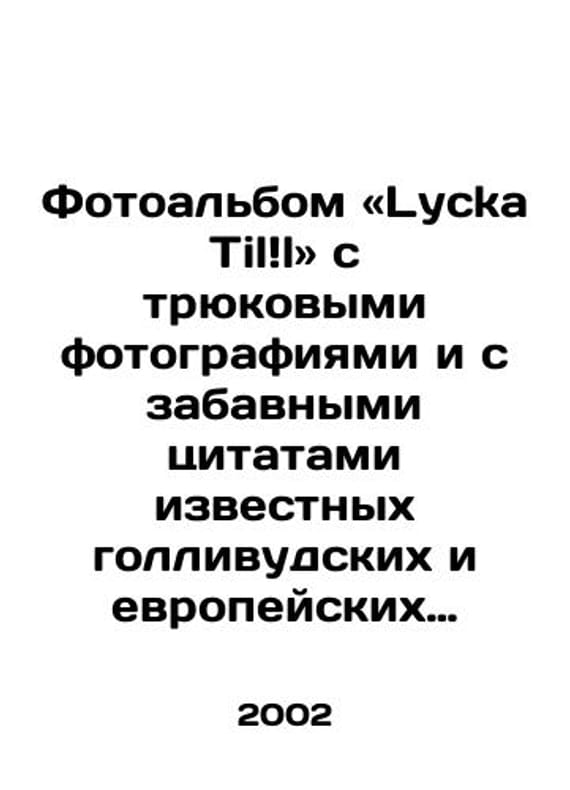 Lycka Til l photo album with trick photos and funny quotes from famous Hollywood and European actors, directors, famous writers and philosophers: Woody Allen, Alan Delon, Samuel Beckett, Marlon Brando, Plato, Honore de Balzac, etc. Sweden: B. Wahlstroms, 2002. /Fotoalbom «Lycka Till s tryukovymi fotografiyami i s zabavnymi tsitatami izvestnykh gollivudskikh i evropeyskikh akterov, rezhesserov, izvestnykh pisateley i filosofov: Vuddi Allena, Alan Delona, Samuelya Bekketa, Marlon Brando, Platon, Onore de Balzak i td. Shvetsiya: B. Wahlstroms, 2002. Lycka Til l photo album with trick photos and funny quotes from famous Hollywood and European actors, directors, famous writers and philosophers: Woody Allen, Alan Delon, Samuel Beckett, Marlon Brando, Plato, Honore de Balzac, etc. Sweden: B. Wahlstroms, 2002. We have thousands of titles and often several copies of each title may be available. Please feel free to contact us for a detailed description of the copies available. SKUbd-f386dd7938a98070.