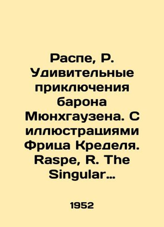 Raspe, R. The Amazing Adventures of Baron Munchausen. With illustrations by Fritz Kredel. Raspe, R. The Singular Adventures of Baron Munchausen. Illustrated by Fritz Kredel/Raspe, R. Udivitelnye priklyucheniya barona Myunkhgauzena. S illyustratsiyami Fritsa Kredelya. Raspe, R. The Singular Adventures of Baron Munchausen. Illustrated by Fritz Kredel. Na angl. yaz. Nyu-York: The Heritage Press, 19 Raspe, R. The Amazing Adventures of Baron Munchausen. With illustrations by Fritz Kredel. Raspe, R. The Singular Adventures of Baron Munchausen. Illustrated by Fritz Kredel.We have thousands of titles and often several copies of each title may be available. Please feel free to contact us for a detailed description of the copies available. SKUbd-f39401ad02f3c47.