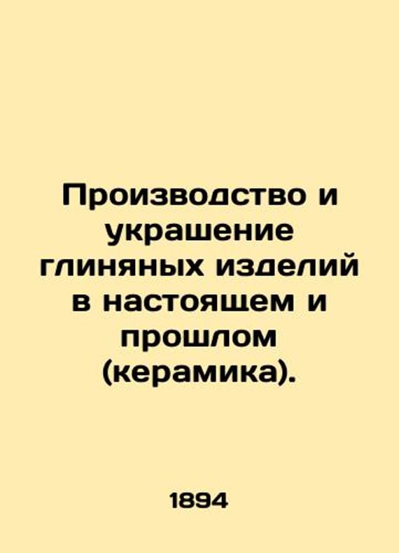 Past and present production and decoration of pottery (ceramics)./Proizvodstvo i ukrashenie glinyanykh izdeliy v nastoyashchem i proshlom (keramika). Production and decoration of clay products in the present and the past (ceramics). St. Petersburg: 1894.We have thousands of titles and often several copies of each title may be available. Please feel free to contact us for a detailed description of the copies available. SKUbd-f3f067d7a15c3691.