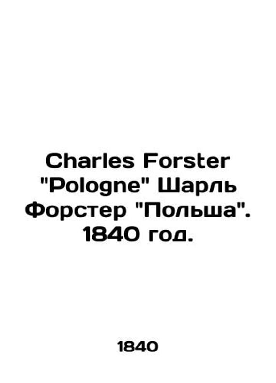 Charles Forster Pologne Charles Forster Poland. 1840./Charles Forster Pologne Sharl Forster Polsha. 1840 god. Publishing house. Firmin Didot Freres. Paris. 1840. Historical and geographical description of Poland. Part of the famous French series LUnivers Pittosque: Histoire et description de tous les peuples. The 1840 edition is known for its rich illustrative material. It includes 55 etchings (steel lithographs) depicting city views, architectural monuments, portraits of historical figures and scenes from life.We have thousands of titles and often several copies of each title may be available. Please feel free to contact us for a detailed description of the copies available. The delivery of this book might be delayed beyond the usual timeframe due to extended processing and preparation before shipment, and faster shipping options are not offered. Please inform us if you need the order by a certain date or have a deadline.SKUbd-f4cd5ab5939ed92