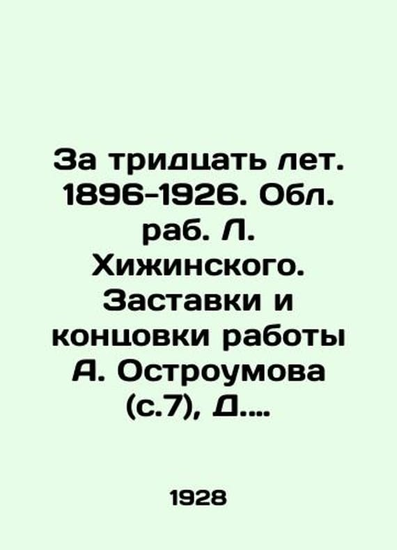 For thirty years. 1896-1926. Rabbi L. Khizhinsky. Screenshots and endings of works by A. Ostroumov (p. 7), D. Mitrokhin (p. 10, 13, 37), L. Khizhinsky (p. 40, 57)/Za tridtsat let. 1896-1926. Obl. rab. L. Khizhinskogo. Zastavki i kontsovki raboty A. Ostroumova (s.7), D. Mitrokhina (ss.10, 13, 37), L. Khizhinskogo (ss. 40, 57). Komitet populyarizatsii khudozh. izdaniy. For thirty years. 1896-1926. Rabbi L. Khizhinskys region. The screensavers and endings of the work of A. Ostroumov (p. 7), D. Mitrokhin (p. 10, 13, 37), L. Khizhinsky (p. 40, 57). We have thousands of titles and often several copies of each title may be available. Please feel free to contact us for a detailed description of the copies available. SKUbd-f537ecc7f9d94a9e.