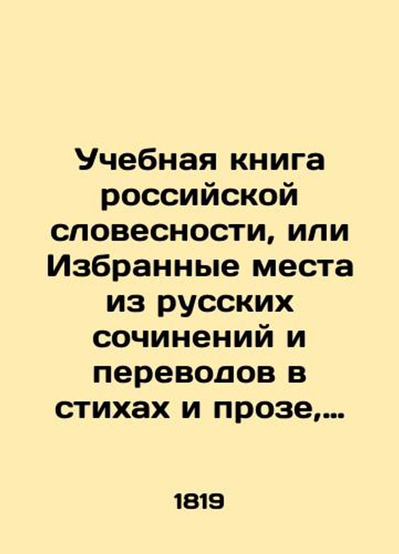A textbook of Russian literature, or Selected passages from Russian compositions and translations in poems and prose, with the addition of brief rules of rhetoric and piitics, and the history of Russian literature published by Nikolai Grech/Uchebnaya kniga rossiyskoy slovesnosti, ili Izbrannye mesta iz russkikh sochineniy i perevodov v stikhakh i proze, s prisovokupleniem kratkikh pravil ritoriki i piitiki, i istorii rossiyskoy slovesnosti izdannye Nikolaem Grechem. V 4 ch. Ch.1. A textbook of Russian literature, or Selected passages from Russian works and translations in poems and prose, with the addition of brief rules of rhetoric and piitics, and the history of Russian literature published by Nikolai Grech. We have thousands of titles and often several copies of each title may be available. Please feel free to contact us for a detailed description of the copies available. SKUbd-f59f12d654c3e1cc.