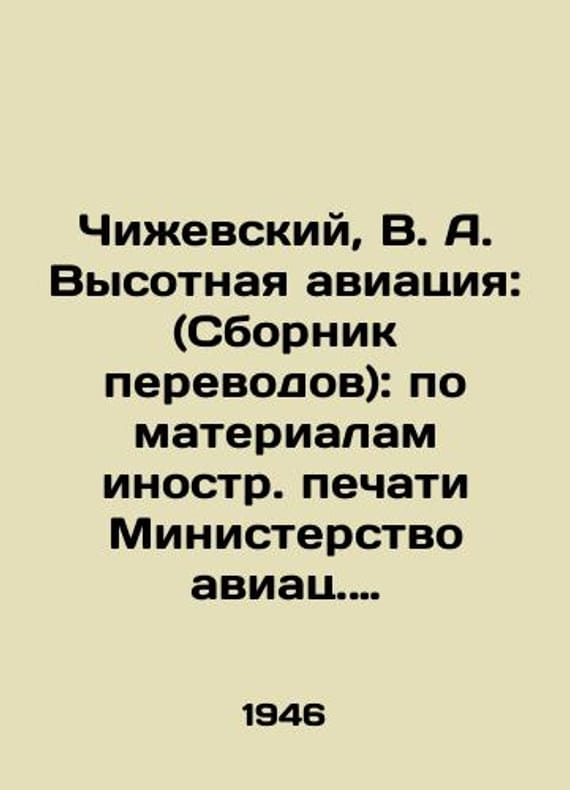 Chizhevsky, V. A. High-altitude aviation: (Collection of translations): based on the materials of the foreign press, Ministry of Aviation Industry of the USSR. Bureau of New Technique./Chizhevskiy, V. A. Vysotnaya aviatsiya: (Sbornik perevodov): po materialam inostr. pechati Ministerstvo aviats. prom-sti SSSR. Byuro novoy tekhniki. Chizhevsky, V. A. High-altitude aviation: (Collection of translations): based on the materials of a foreign press, Ministry of Aviation Industry of the USSR. Bureau of New Technique. Moscow: BNT publication, type. Oborongiz, 1946. 64 pp.We have thousands of titles and often several copies of each title may be available. Please feel free to contact us for a detailed description of the copies available. SKUbd-2de8f2573460e27.