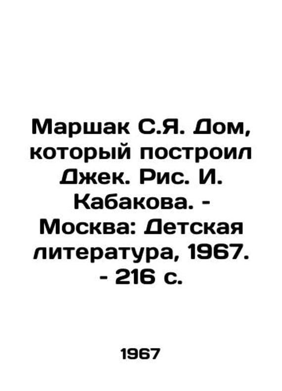 Marshak S.I. The House That Jack Built, Moscow: Childrens Literature, 1967, p. 216/Marshak S.Ya. Dom, kotoryy postroil Dzhek. Ris. I. Kabakova. Moskva: Detskaya literatura, 1967. 216 s. Marshak S.I. The House That Jack Built, Moscow: Childrens Literature, 1967, p. 216.We have thousands of titles and often several copies of each title may be available. Please feel free to contact us for a detailed description of the copies available. SKUbd-f67346af2ef8e76b.