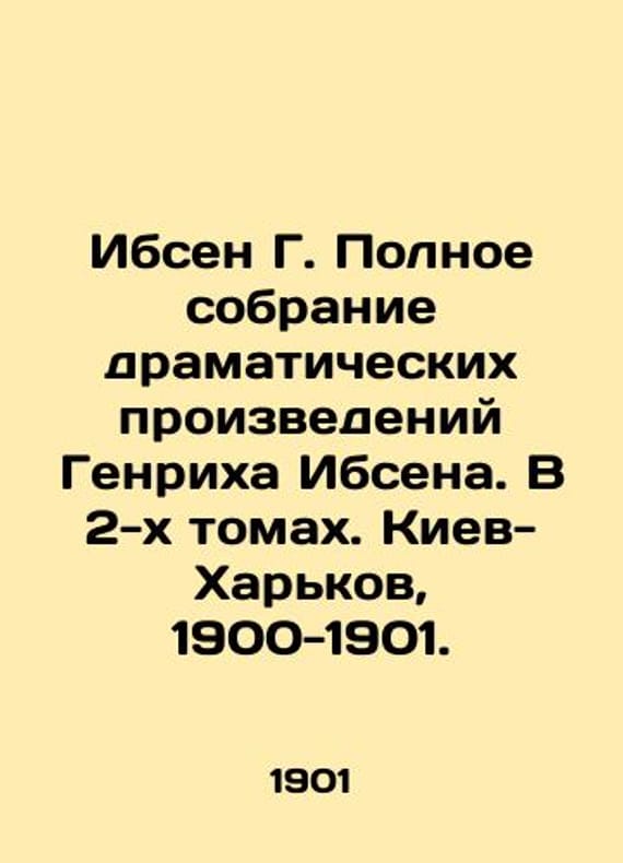 Ibsen G. Complete collection of dramatic works by Heinrich Ibsen. In two volumes. Kyiv-Kharkiv, 1900-1901./Ibsen G. Polnoe sobranie dramaticheskikh proizvedeniy Genrikha Ibsena. V 2-kh tomakh. Kiev-Kharkov, 1900-1901. Ibsen G. Complete collection of dramatic works by Heinrich Ibsen. In two volumes. Volumes 1-2. Translation from Danish by M.V. Luchitskaya. Kyiv-Kharkov: F.A. Johanson, 1900-1901. We have thousands of titles and often several copies of each title may be available. Please feel free to contact us for a detailed description of the copies available. SKUbd-f67b45c3cd4173e3.