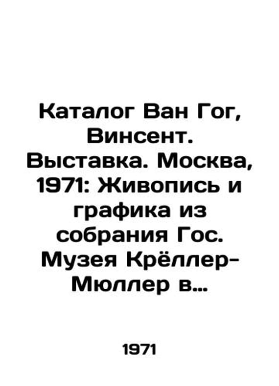 Van Gogh Catalogue, Vincent. Exhibition. Moscow, 1971: Painting and Graphics from the Collection of the Kreller-Muller State Museum in Otterlo. 31, 31 p./Katalog Van Gog, Vinsent. Vystavka. Moskva, 1971: Zhivopis i grafika iz sobraniya Gos. Muzeya Kryoller-Myuller v Otterlo. 31, 31 s. Culture of the SSR.-Culture, Recreation and Societies, Works of the Netherlands. -The Pushkin State Museum of Fine Arts. -The Hermitage State Museum. The Koeller-Muller State Museum. Within the work of the cultural agreement between the USSR and the Netherlands. -Paral. title in Dutch 5x21 sm. We have thousands of titles and often several copies of each title may be available. Please feel free to contact us for a detailed description of the copies available. SKUbd-f6b7284ead044a68.