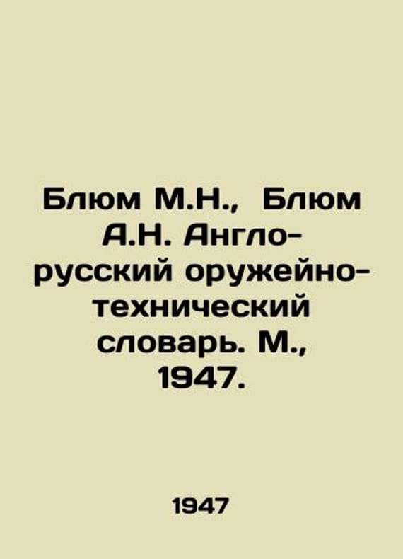 Blum M.N., Blum A.N. Anglo-Russian Weapons-Technical Dictionary. Moscow, 1947./Blyum M.N., Blyum A.N. Anglo-russkiy oruzheyno-tekhnicheskiy slovar. M., 1947. Blum M.N., Blum A.N. Anglo-Russian Weapons and Technical Dictionary. Edited by K.V. Chemen. Moscow: Gostehizdat, 1947.-160 p., p. We have thousands of titles and often several copies of each title may be available. Please feel free to contact us for a detailed description of the copies available. SKUbd-f721d32eb5778d34.
