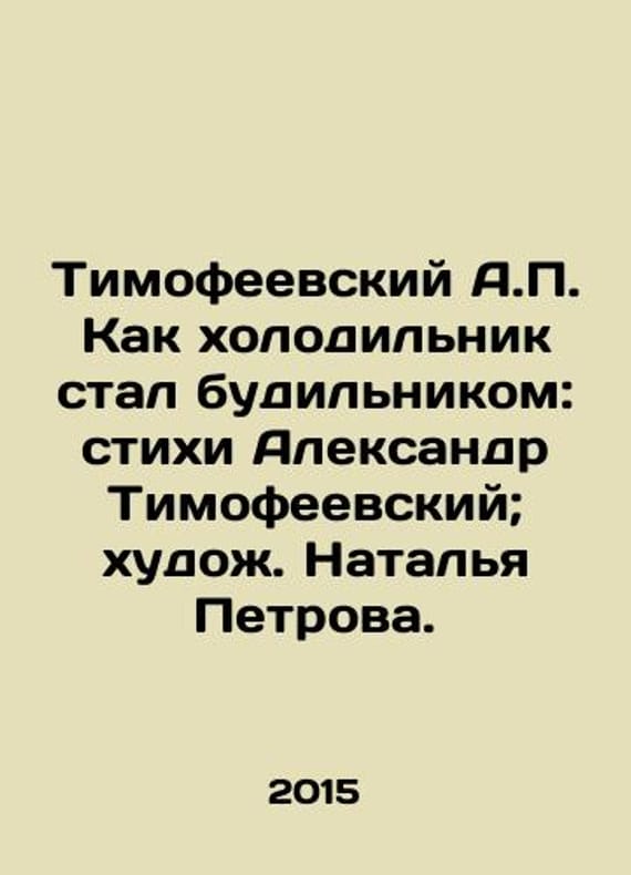 "Timofeevsky A. How the fridge became an alarm clock: poems by Alexander Timofeevsky; artist Natalia Petrova./Timofeevskiy A. Kak kholodilnik stal budilnikom: stikhi Aleksandr Timofeevskiy; khudozh. Natalya Petrova. The illustrations by Natalia Petrova perfectly complement the poems. Petrova Natalia, an artist and illustrator, was born in Moscow on October 20, 1981 into a family of artists and pilots. In 1998, she graduated from Childrens Art School # 1 (Moscow), in 2004 from Moscow State University of Print, and received a degree in graphic arts. Since 2003, she has been a teacher at the Childrens Izostudio at the A.S. Pushkin State Museum of Fine Arts, and has participated in Russian and international exhibitions since 2001. We have thousands of titles and often several copies of each title may be available. Please feel free to contact us for a detailed description of the copies available. SKUbd-f7336ce71ba758df."