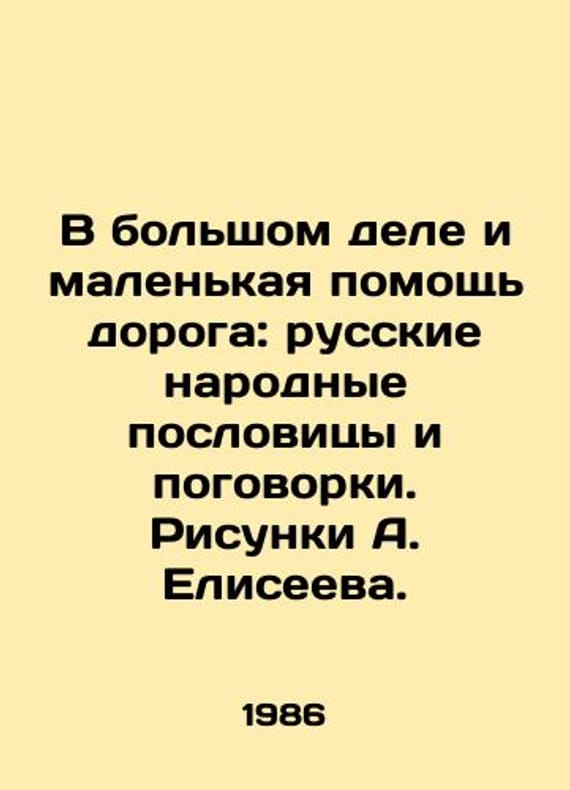 In big business and small help is expensive: Russian folk proverbs and proverbs. Sketches by A. Eliseev./V bolshom dele i malenkaya pomoshch doroga: russkie narodnye poslovitsy i pogovorki. Risunki A. Eliseeva. In big business and small help is expensive: Russian folk proverbs and proverbs. Sketches by A. Eliseev. We have thousands of titles and often several copies of each title may be available. Please feel free to contact us for a detailed description of the copies available. SKUbd-f7f1b6ac2b6c3b4b.