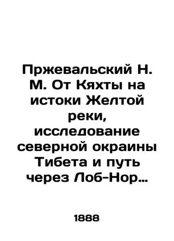 Przhevalsky N.M. From Kyakhta to the source of the Yellow River. Exploring the northern edge of Tibet and crossing Lob Nor through the Tarim basin In Russian (ask us if in doubt)/Przheval'skiy N.M. Ot Kyakhty na istoki Zheltoy reki. Issledovanie severnoy okrainy Tibeta i put' cherez Lob-nor po basseynu Tarima Short description: In Russian (ask us if in doubt).The Fourth Journey to Central Asia. With 3 maps 29 phototypes and 3 polities. Edition of the Imperial Russian Geographical Society of St. Petersburg: V.S. Balashev's Printing House 1888 6 II IV 536 p We have thousands of titles and often several copies of each title may be available. Please feel free to contact us for a detailed description of the copies available. SKUalb08cf9446d629a82e