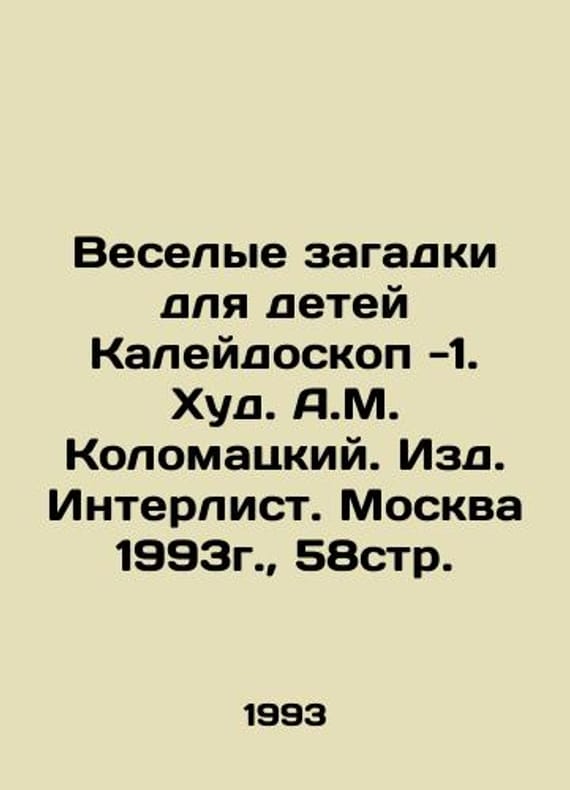 Merry puzzles for children Kaleidoscope -1. Hud. A.M. Kolomatsky. Publishing House. Moscow, 1993, 58p./Veselye zagadki dlya detey Kaleydoskop -1. Khud. A.M. Kolomatskiy. Izd. Interlist. Moskva 1993g., 58str. Merry puzzles for children Kaleidoscope -1. Hud. A.M. Kolomatsky. Publishing House. Moscow, 1993, 58p. We have thousands of titles and often several copies of each title may be available. Please feel free to contact us for a detailed description of the copies available. SKUbd-f8663c7e1e9b67d9.