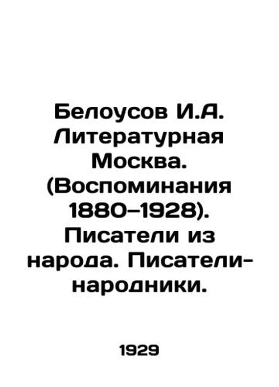 Belousov I. Literary Moscow (Memories 1880-1928). Writers from the people writers-folk. In Russian (ask us if in doubt)/Belousov I. Literaturnaya Moskva (Vospominaniya 1880 1928). Pisateli iz naroda pisateli-narodniki.Moscow: Cooperative Publishing House Today 1928. 88 p.. SKUalbb011b8d26b2b7f10.