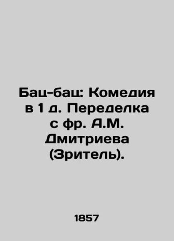 "Bats-batz: Comedy in 1 d. Adaptation by A.M. Dmitriev (The Spectator)./Bats-bats: Komediya v 1 d. Peredelka s fr. A.M. Dmitrieva (Zritel). Bats-batz: Comedy in 1 village. Transformation from A.M. Dmitrievs (The Spectator).-Moscow: Moscow: Rassokhina Theatre, 1880.-20 p.; 27x16 sm. We have thousands of titles and often several copies of each title may be available. Please feel free to contact us for a detailed description of the copies available. SKUbd-fa0251d86d85d2e9."