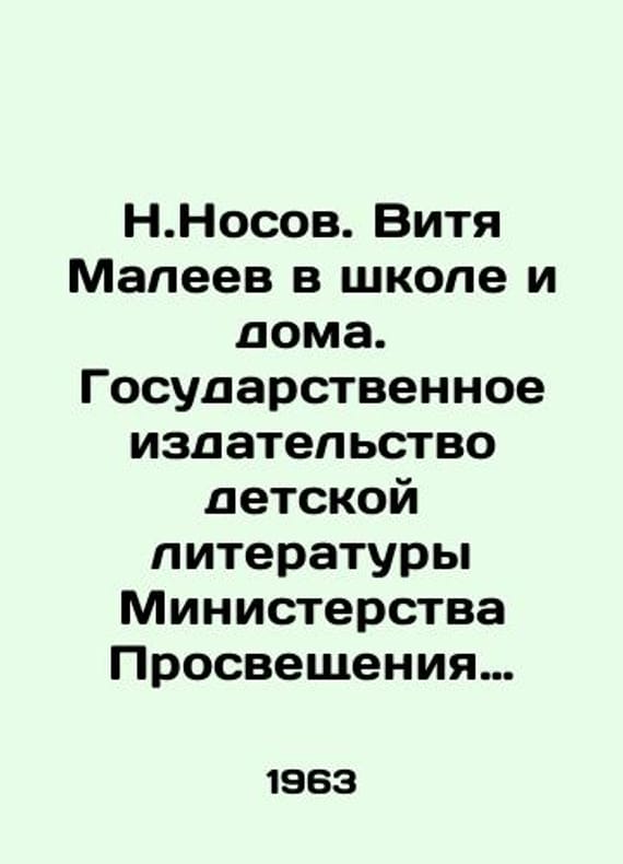 N.Nosov. Vitya Maleev at school and at home. State Publishing House of Childrens Literature of the Ministry of Enlightenment of the RSFSR, 1963/N.Nosov. Vitya Maleev v shkole i doma. Gosudarstvennoe izdatelstvo detskoy literatury Ministerstva Prosveshcheniya RSFSR, 1963 god N.Nosov. Vitya Maleev at school and at home. State Publishing House of Childrens Literature of the Ministry of Enlightenment of the RSFSR, 1963. We have thousands of titles and often several copies of each title may be available. Please feel free to contact us for a detailed description of the copies available. SKUbd-fa10590aa7fe6806.