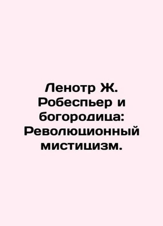 Lenotre J. Robespierre and the Virgin Mary: Revolutionary Mysticism./Lenotr Zh. Robesper i bogoroditsa: Revolyutsionnyy mistitsizm. Lenotre J. Robespierre and Our Lady: Revolutionary Mysticism - Riga: Riga Publishing House, 19-? -299We have thousands of titles and often several copies of each title may be available. Please feel free to contact us for a detailed description of the copies available. SKUbd-fafde8fc0b8cff7f.