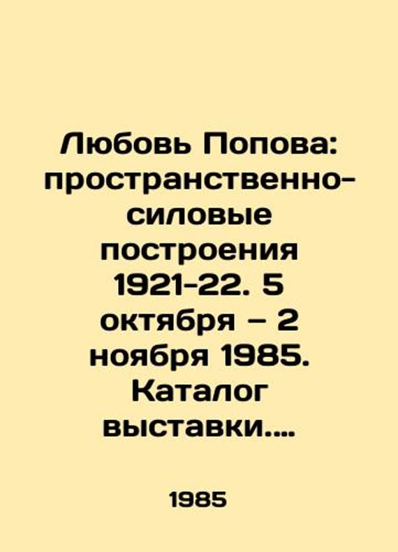 Liubov Popova spatial force constructions 1921-22. October 5, November 2, 1985. Catalogue of the exhibition. Liubov Popov spatial force constructions 1921-22/Lyubov Popova: prostranstvenno-silovye postroeniya 1921-22. 5 oktyabrya 2 noyabrya 1985. Katalog vystavki. Liubov Popova spatial force constructions 1921-22. Na angl. yaz. Nyu-York: Rachel Adler gallery, 19 Liubov Popov spatial force constructions 1921-22. October 5, November 2, 1985. Catalogue of the exhibition. Liubov Popov spatial force constructions 1921-22. New York: Rachel Adler gallery, 1985. 36 p., 23 - 16.5 sm. We have thousands of titles and often several copies of each title may be available. Please feel free to contact us for a detailed description of the copies available. SKUbd-fb3978108a6e4c5c.