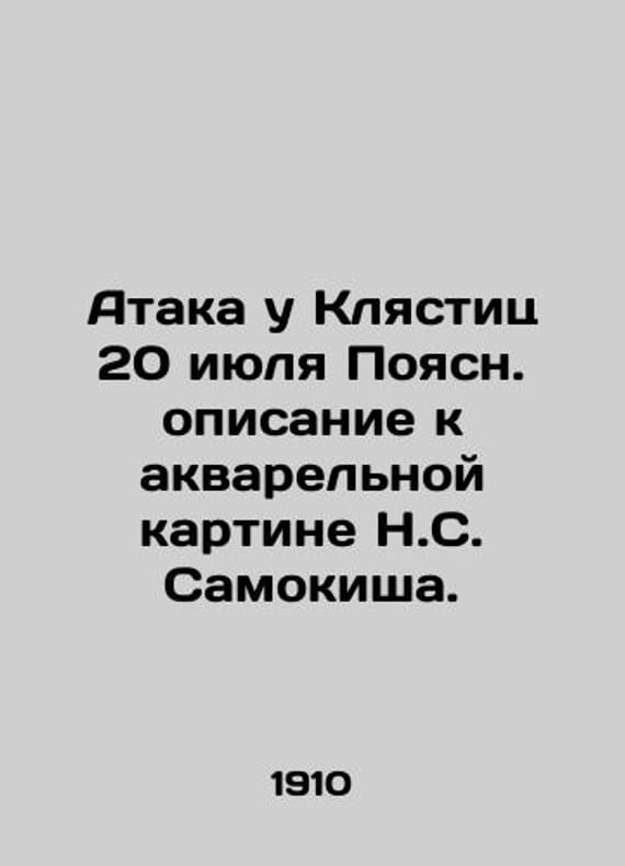 Attack at the Clastics on July 20 Explanatory description to the watercolor painting by N. S. Samokish/Ataka u Klyastits 20 iyulya Poyasn. opisanie k akvarelnoy kartine N.S. Samokisha. Attack at Klyastits on July 20. Explanatory description for a watercolor painting by N. S. Samokish. We have thousands of titles and often several copies of each title may be available. Please feel free to contact us for a detailed description of the copies available. SKUbd-fc14b800c7319639.