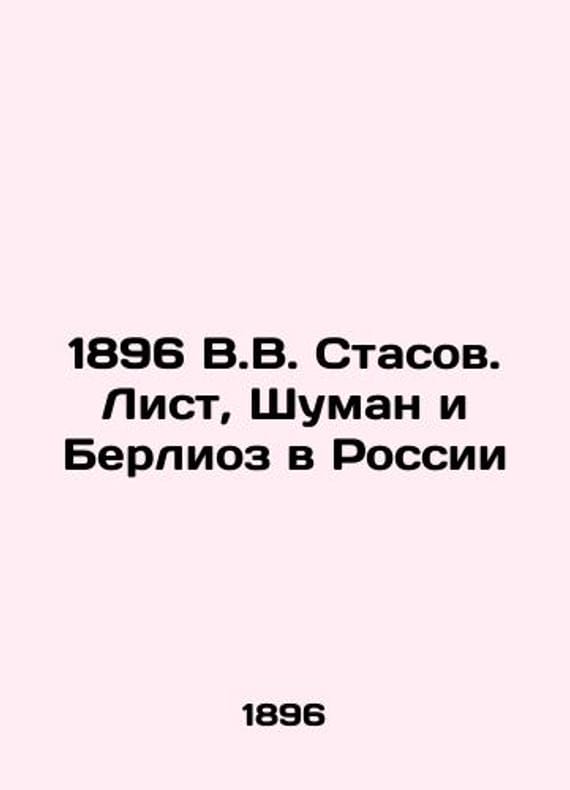1896 V.V. Stasov. List, Schuman and Berlioz in Russia/1896 V.V. Stasov. List, Shuman i Berlioz v Rossii Stasov, Vladimir Vasilyevich (1824-1906). Liszt, Schuman and Berlioz in Russia and Liszt, Schuman and Berlioz in Russia V.V. Stasov.We have thousands of titles and often several copies of each title may be available. Please feel free to contact us for a detailed description of the copies available. SKUbd-fc1c58a0b46eba32.