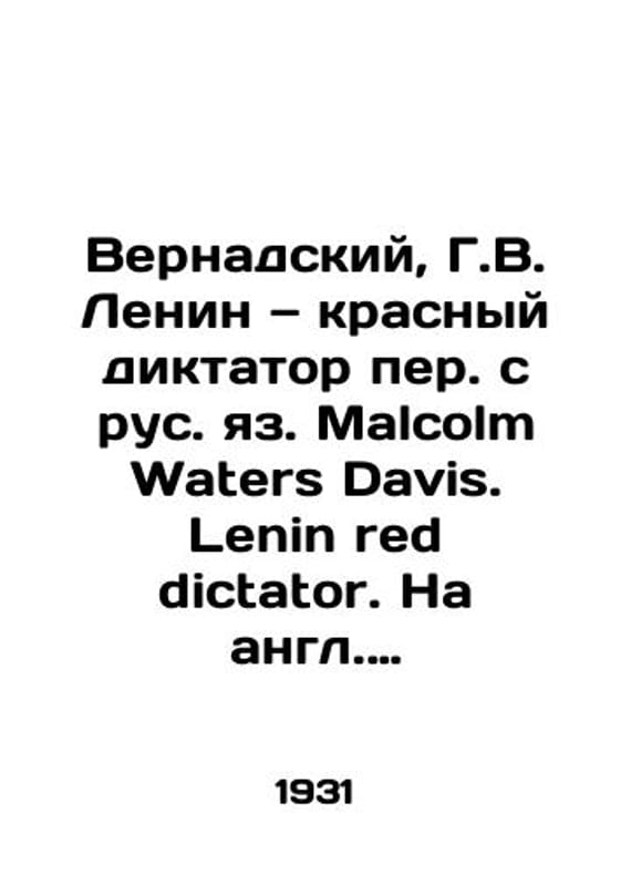 Vernadsky, H.W. Lenin, Red Dictator Translated from Russian by Malcolm Waters Davis. Lenin red dictator. New Haven, 19/Vernadskiy, G.V. Lenin krasnyy diktator per. s rus. yaz. Malcolm Waters Davis. Lenin red dictator. Na angl. yaz. Nyu-Kheyven, 19 Vernadsky, H.W. Lenin, Red Dictator Translated from Russian by Malcolm Waters Davis. Lenin, Red Dictator, New Haven, 1931.. SKUbd-fc2649497cef02f5.We have thousands of titles and often several copies of each title may be available. Please feel free to contact us for a detailed description of the copies available. The delivery of this book might be delayed beyond the usual time due to extended processing and preparation before shipment, and faster shipping options are not offered. Please inform us if you need the order by a certain date or have a deadline.SKUbd-fc2649497cef02f5