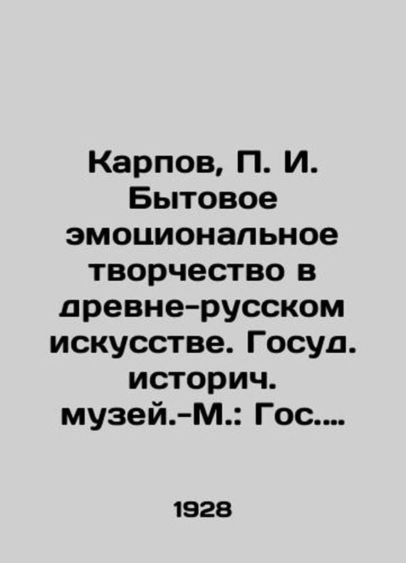 Karpov, I. Domestic Emotional Creativity in Ancient Russian Art. State Historical Museum. Moscow: State Historical Museum, 1928.-112, 2 p/Karpov, I. Bytovoe emotsionalnoe tvorchestvo v drevne-russkom iskusstve. Gosud. istorich. muzey.-M.: Gos. ist. muzey, 1928.-112, 2 c. Karpov, I. Domestic Emotional Creativity in Ancient Russian Art. State Historical Museum. Moscow: State Historical Museum, 1928.-112, 2 p.We have thousands of titles and often several copies of each title may be available. Please feel free to contact us for a detailed description of the copies available. The delivery of this book might be delayed beyond the usual timeframe due to extended processing and preparation before shipment, and faster shipping options are not offered. Please inform us if you need the order by a certain date or have a deadline.SKUbd-fc31d9ff2fe3d169