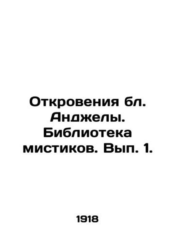 Revelations of Angelas bd. Library of Mystics. Volume 1./Otkroveniya bl. Andzhely. Biblioteka mistikov. Vyp. 1. Revelations of Angelas Blvd. Library of Mystics. Volume 1. Translation and introduction by L.P. Karsavin. Moscow: G.A. Lehman, 1918. Volume 8, 309, 14 p. We have thousands of titles and often several copies of each title may be available. Please feel free to contact us for a detailed description of the copies available. SKUbd-fce2329561f603d9.