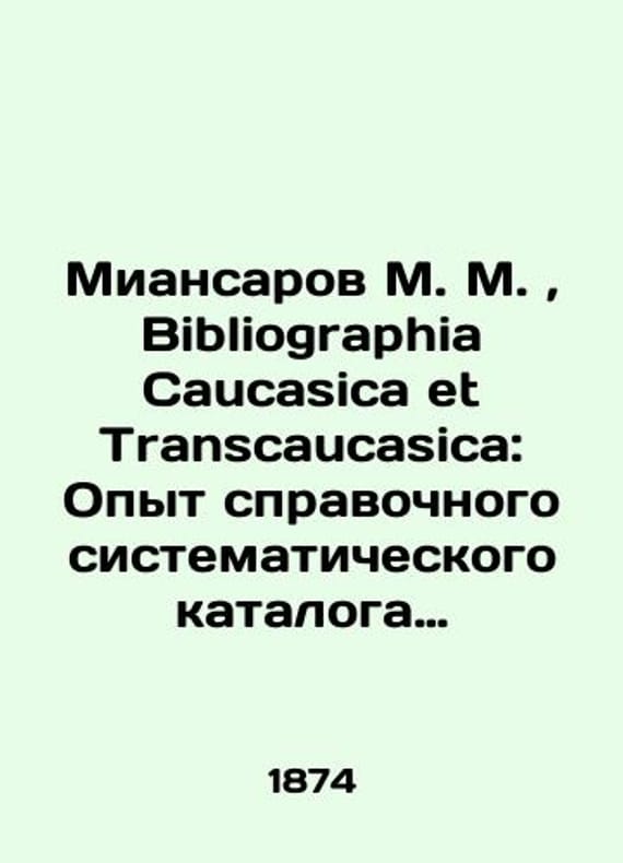 "Miansarov M. M., Bibliography Caucasica et Transcaucasica: Experience of a reference systematic catalogue of printed works on the Caucasus, Transcaucasus and the tribes that inhabit these regions. Vol.1. and the only one/Miansarov M. M., Bibliographia Caucasica et Transcaucasica: Opyt spravochnogo sistematicheskogo kataloga pechatnym sochineniyam o Kavkaze, Zakavkaze i plemenakh, eti kraya naselyayushchikh. T. 1. i edinstvennyy. S.Pb.: Tip. O. I. Baksta i Gogenfelden i Ko, 1874-1876. Otd. 1-2. 1874-1876. 6, XLII, 804 s.; 22,6 - 16,5 sm. Miansarov M. M., Bibliography Caucasica et Transcaucasica: Experience of a reference systematic catalogue of printed works on the Caucasus, Transcaucasus and the tribes that inhabit these regions. Vol.1. and the only one.We have thousands of titles and often several copies of each title may be available. Please feel free to contact us for a detailed description of the copies available. SKUbd-fdc4a5347035222."